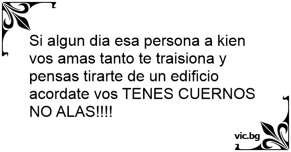 Si algun dia esa persona a kien vos amas tanto te traisiona y pensas tirarte de un edificio acordate vos TENES CUERNOS NO ALAS!!!!