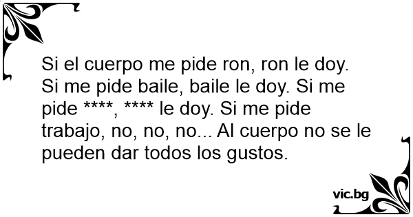 Si el cuerpo me pide ron, ron le doy. Si me pide baile, baile le doy. Si me pide ****, **** le doy. Si me pide trabajo, no, no, no... Al cuerpo no se le pueden dar todos los gustos.