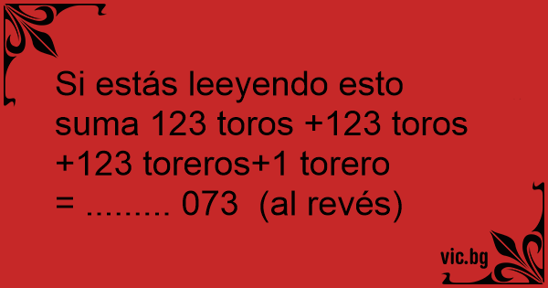Si estás leeyendo esto suma 123 toros +123 toros +123 toreros+1 torero = ......... 073 (al revés)