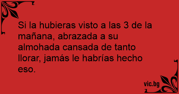 Si la hubieras visto a las 3 de la mañana, abrazada a su almohada cansada de tanto llorar, jamás le habrías hecho eso.