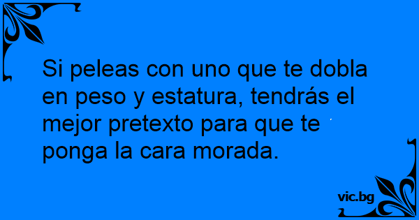 Si peleas соn uno que te dobla en peso y estatura, tendrás el mejor pretexto para que te ponga la cara morada.