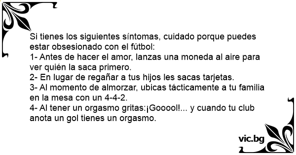 4- Al tener un orgasmo gritas:¡Gooool!... y cuando tu club anota un gol tienes un orgasmo.