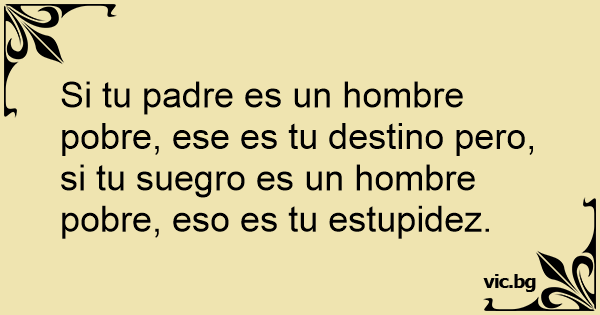 Si tu padre es un hombre pobre, ese es tu destino pero, si tu suegro es un hombre pobre, eso es tu estupidez.