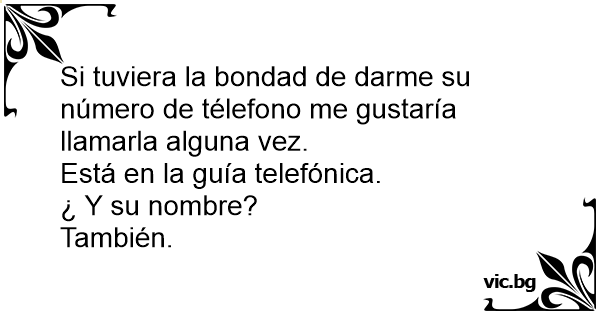 Si tuviera la bondad de darme su número de télefono me gustaría llamarla alguna vez.