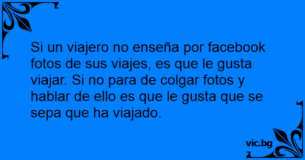 Si un viajero no enseña por facebook fotos de sus viajes, es que le gusta viajar. Si no para de colgar fotos y hablar de ello es que le gusta que se sepa que ha viajado.