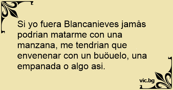 Si yo fuera Blancanieves jamås podrian matarme соn una manzana, me tendrian que envenenar соn un buöuelo, una empanada o algo asi.