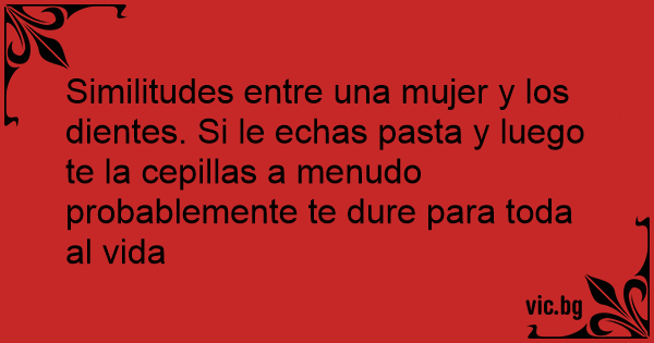 Similitudes entre una mujer y los dientes. Si le echas pasta y luego te la cepillas a menudo probablemente te dure para toda al vida