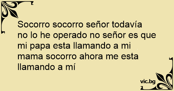 Socorro socorro señor todavía no lo he operado no señor es que mi papa esta llamando a mi mama socorro ahora me esta llamando a mí