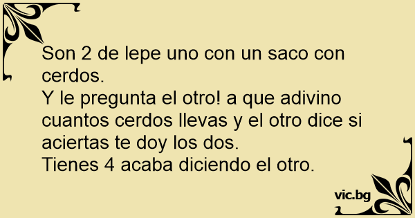 Y le pregunta el otro! a que adivino cuantos cerdos llevas y el otro dice si aciertas te doy los dos.