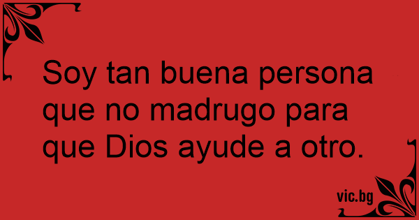 Soy tan buena persona que no madrugo para que Dios ayude a otro.