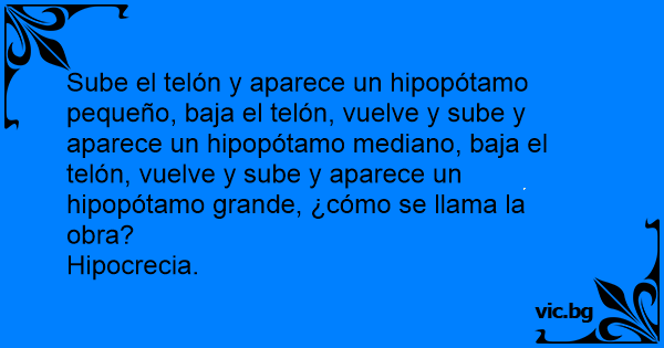 Sube el telón y aparece un hipopótamo pequeño, baja el telón, vuelve y sube y aparece un hipopótamo mediano, baja el telón, vuelve y sube y aparece un hipopótamo grande, ¿cómo se llama la obra?