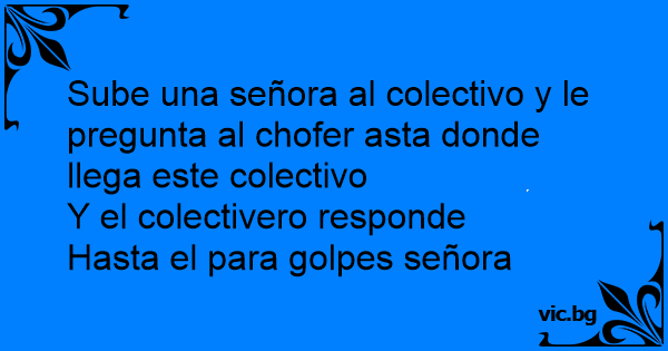 Sube una señora al colectivo y le pregunta al chofer asta donde llega este colectivo