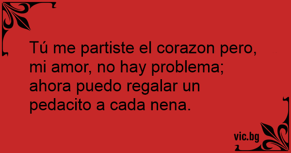 Tú me partiste el corazon pero, mi amor, no hay problema; ahora puedo regalar un pedacito a cada nena.