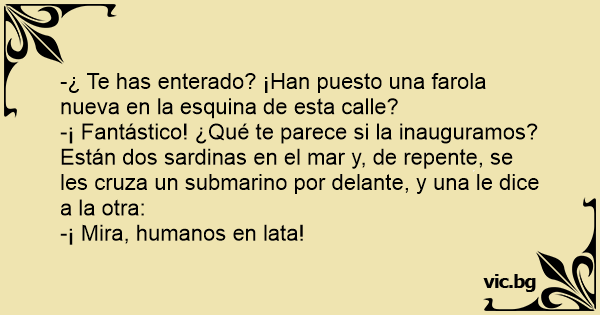 Están dos sardinas en el mar y, de repente, se les cruza un submarino por delante, y una le dice a la otra: