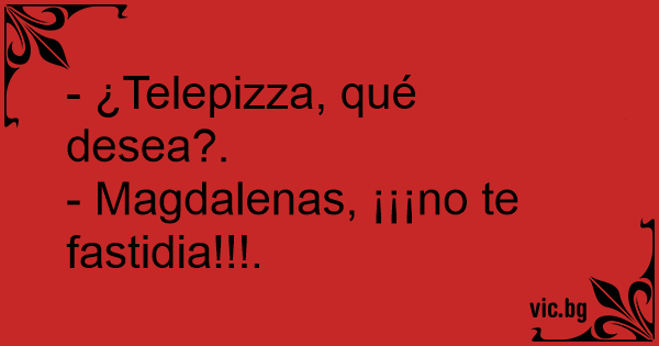 - ¿Telepizza, qué desea?. - Magdalenas, ¡¡¡no te fastidia!!!.