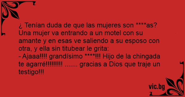 - Ajaaa!!!! grandísimo ****!!! Hijo de la chingada te agarré!!!!!!!!! ....... gracias a Dios que traje un testigo!!!