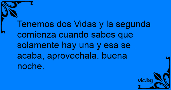 Tenemos dos Vidas y la segunda comienza cuando sabes que solamente hay una y esa se acaba, aprovechala, buena noche.
