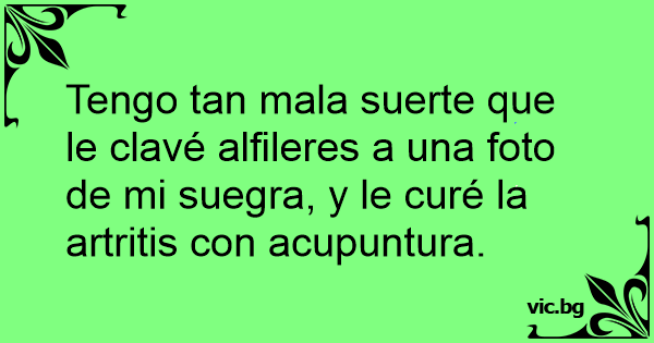 Tengo tan mala suerte que le clavé alfileres a una foto de mi suegra, y le curé la artritis соn acupuntura.