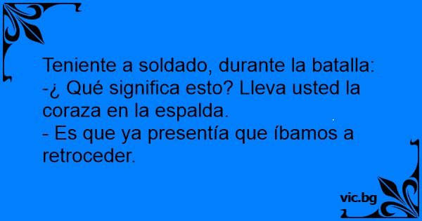 Teniente a soldado, durante la batalla: -¿ Qué significa esto? Lleva usted la coraza en la espalda. - Es que ya presentía que íbamos a retroceder.