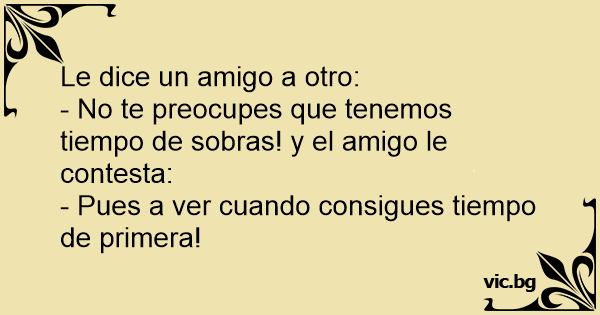 - No te preocupes que tenemos tiempo de sobras! y el amigo le contesta: