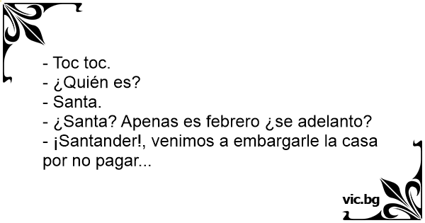 - ¡Santander!, venimos a embargarle la casa por no pagar...