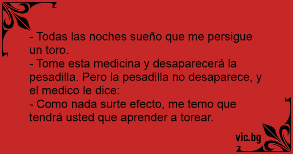- Tome esta medicina y desaparecerá la pesadilla. Pero la pesadilla no desaparece, y el medico le dice: