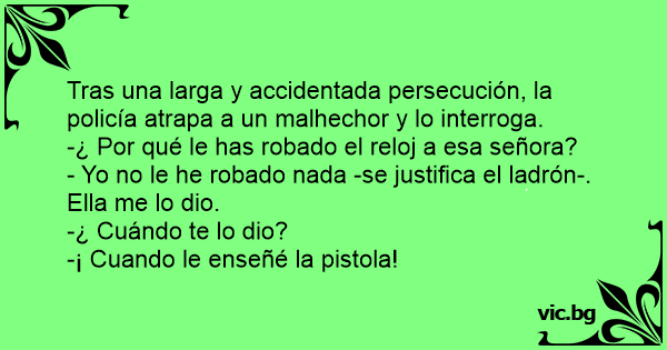 - Yo no le he robado nada -se justifica el ladrón-. Ella me lo dio.