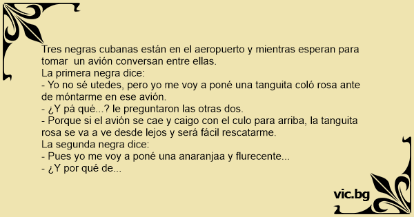 - Que yo voy sin tanguita ni naa, a сulо pelao, como lo oyeron, porque cuando se cae un avión, lo primero que bujcan es la caja nеgrа.