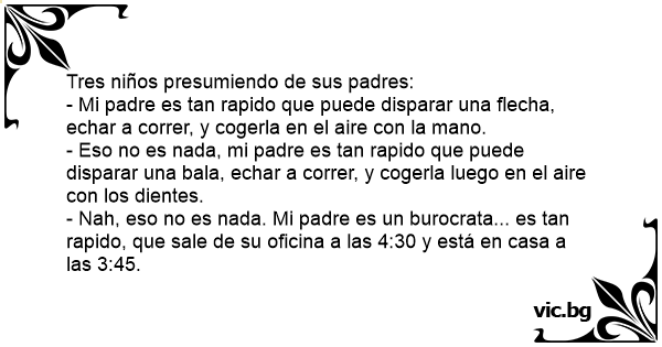 - Nah, eso no es nada. Mi padre es un burocrata... es tan rapido, que sale de su oficina a las 4:30 y está en casa a las 3:45.