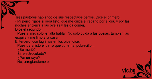Tres pastores hablando de sus respectivos perros. Dice el primero: