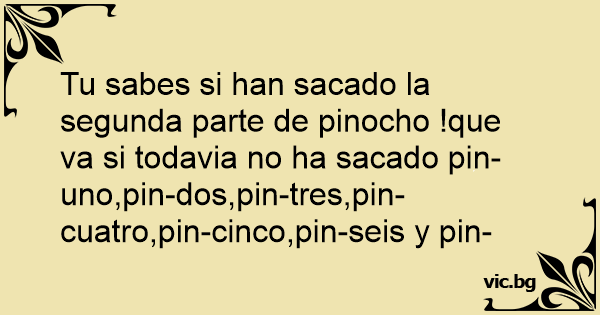 Tu sabes si han sacado la segunda parte de pinocho !que va si todavia no ha sacado pin-uno,pin-dos,pin-tres,pin-cuatro,pin-cinco,pin-seis y pin-siete