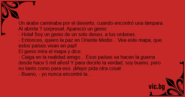 Un árabe caminaba por el desierto, cuando encontró una lámpara.