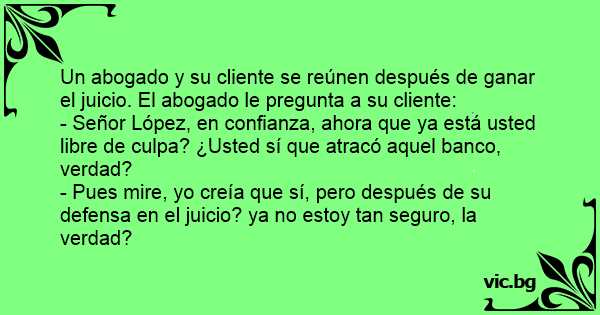 Un abogado y su cliente se reúnen después de ganar el juicio. El abogado le pregunta a su cliente: