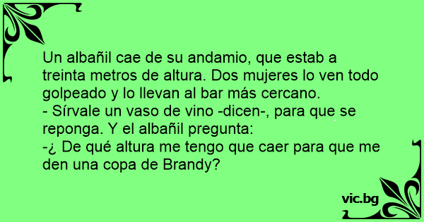 -¿ De qué altura me tengo que caer para que me den una copa de Brandy?