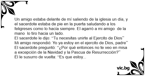 Mi amigo respondió: Yo ya estoy en el ejercito de Dios, padre”