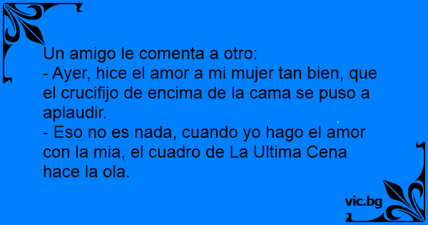 - Ayer, hice el amor a mi mujer tan bien, que el crucifijo de encima de la cama se puso a aplaudir.