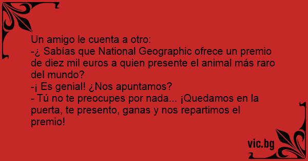 -¿ Sabías que National Geographic ofrece un premio de diez mil euros a quien presente el animal más raro del mundo?