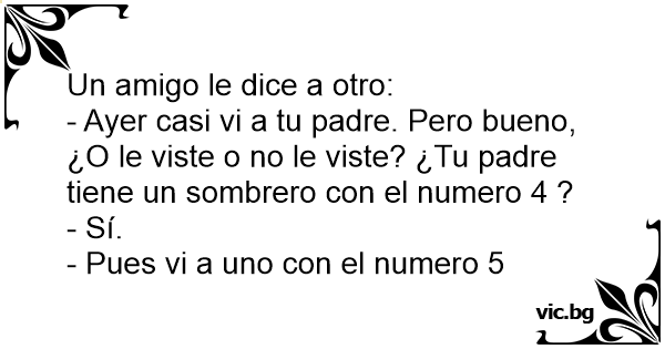 - Ayer casi vi a tu padre. Pero bueno, ¿O le viste o no le viste? ¿Tu padre tiene un sombrero соn el numero 4 ?