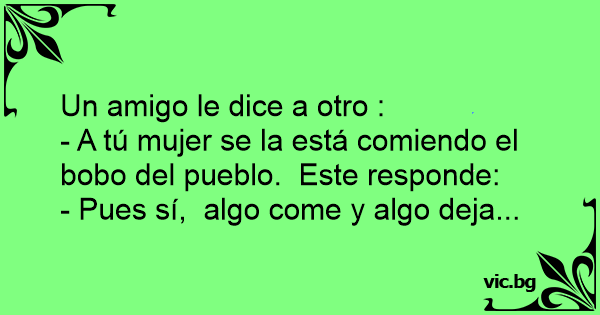 - A tú mujer se la está comiendo el bobo del pueblo. Este responde: