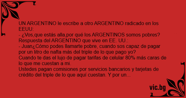 UN ARGENTINO le escribe a otro ARGENTINO radicado en los EEUU: