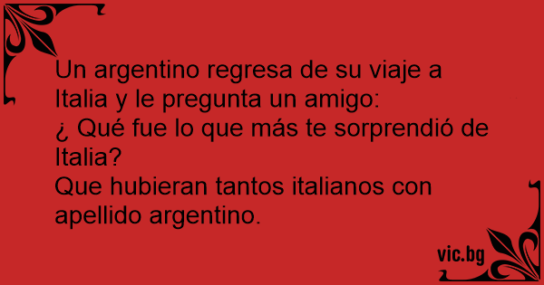 Un argentino regresa de su viaje a Italia y le pregunta un amigo: