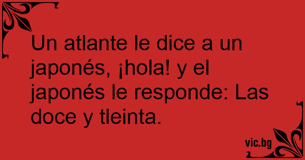 Un atlante le dice a un japonés, ¡hola! y el japonés le responde: Las doce y tleinta.