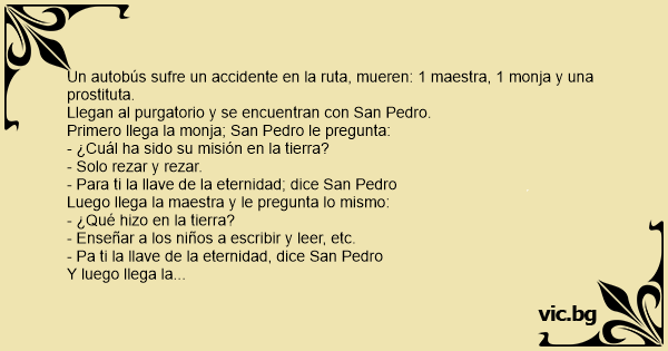 Primero llega la monja; San Pedro le pregunta: