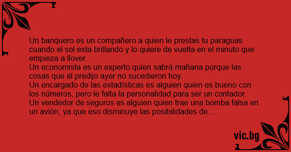 Un banquero es un compañero a quien le prestas tu paraguas cuando el sol esta brillando y lo quiere de vuelta en el minuto que empieza a llover.