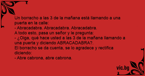 - ¿Oiga, qué hace usted a las 3 de la mañana llamando a una puerta y diciendo ABRACADABRA?.