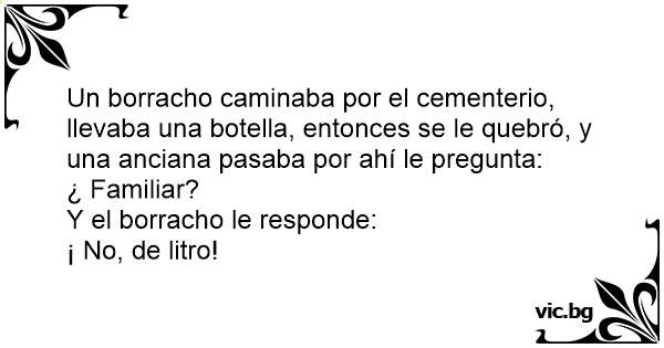 Un borracho caminaba por el cementerio, llevaba una botella, entonces se le quebró, y una anciana pasaba por ahí le pregunta: