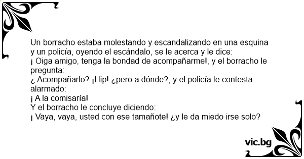 Un borracho estaba molestando y escandalizando en una esquina y un policía, oyendo el escándalo, se le acerca y le dice: