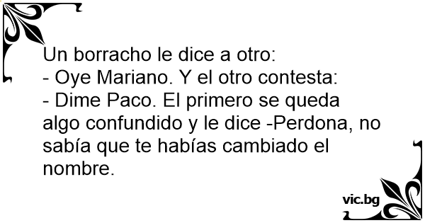 - Dime Paco. El primero se queda algo confundido y le dice -Perdona, no sabía que te habías cambiado el nombre.