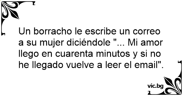 Un borracho le escribe un correo a su mujer diciéndole "... Mi amor llego en cuarenta minutos y si no he llegado vuelve a leer el email".