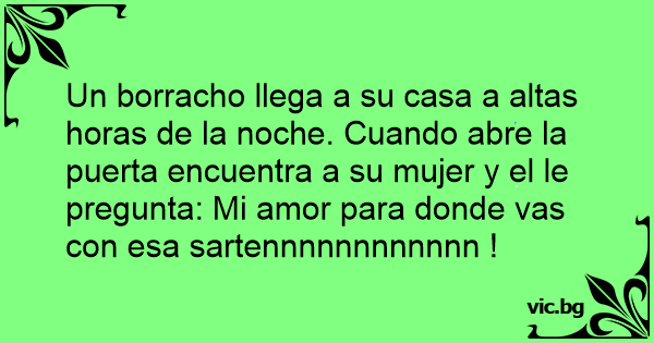 Un borracho llega a su casa a altas horas de la noche. Cuando abre la puerta encuentra a su mujer y el le pregunta: Mi amor para donde vas соn esa sartennnnnnnnnnnn !